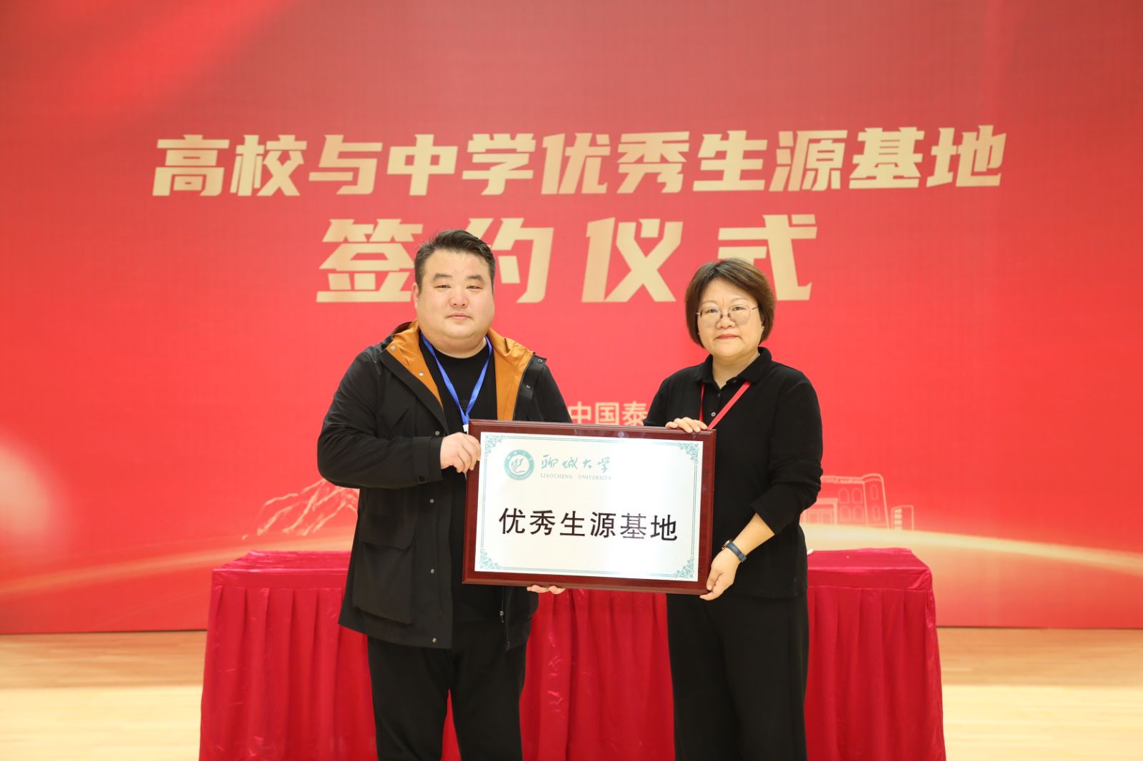 10月29日,招生工作处副处长崔若健、正科级秘书张博赴泰安参加全国高校与中学山东战略合作联盟年会。