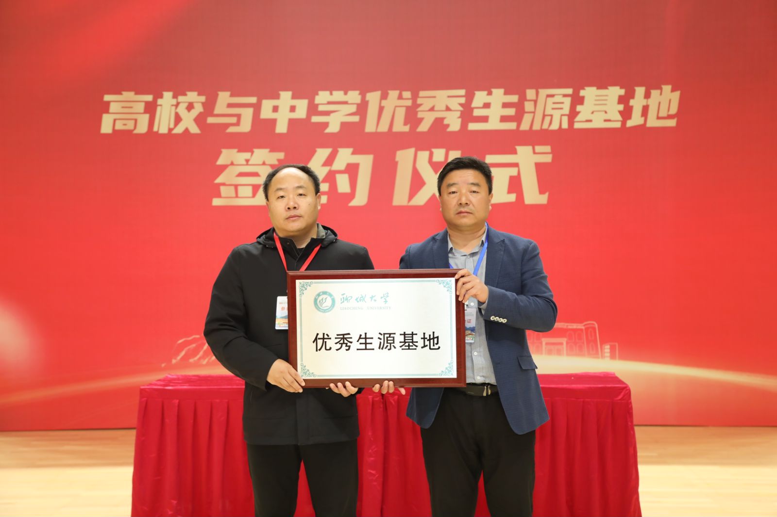 会议现场,我校分别与济南一中、济南二中、济南中学、济南回民中学、章丘七中、济南协和双语实验学校、菏泽麟州外国语学校7所生源学校签署了优秀生源基地共建协议;向其深入推介了“走进高中”2025年招生政策解读、“学在聊大”校园研学、“高考倒计时100天日历”寄送等“2024-2025聊城大学服务高中计划”项目;双方就加强合作、协同育人进行了深入洽谈,进一步贯通了我校与生源高中的协同育人路径,搭建了合作交流平台。