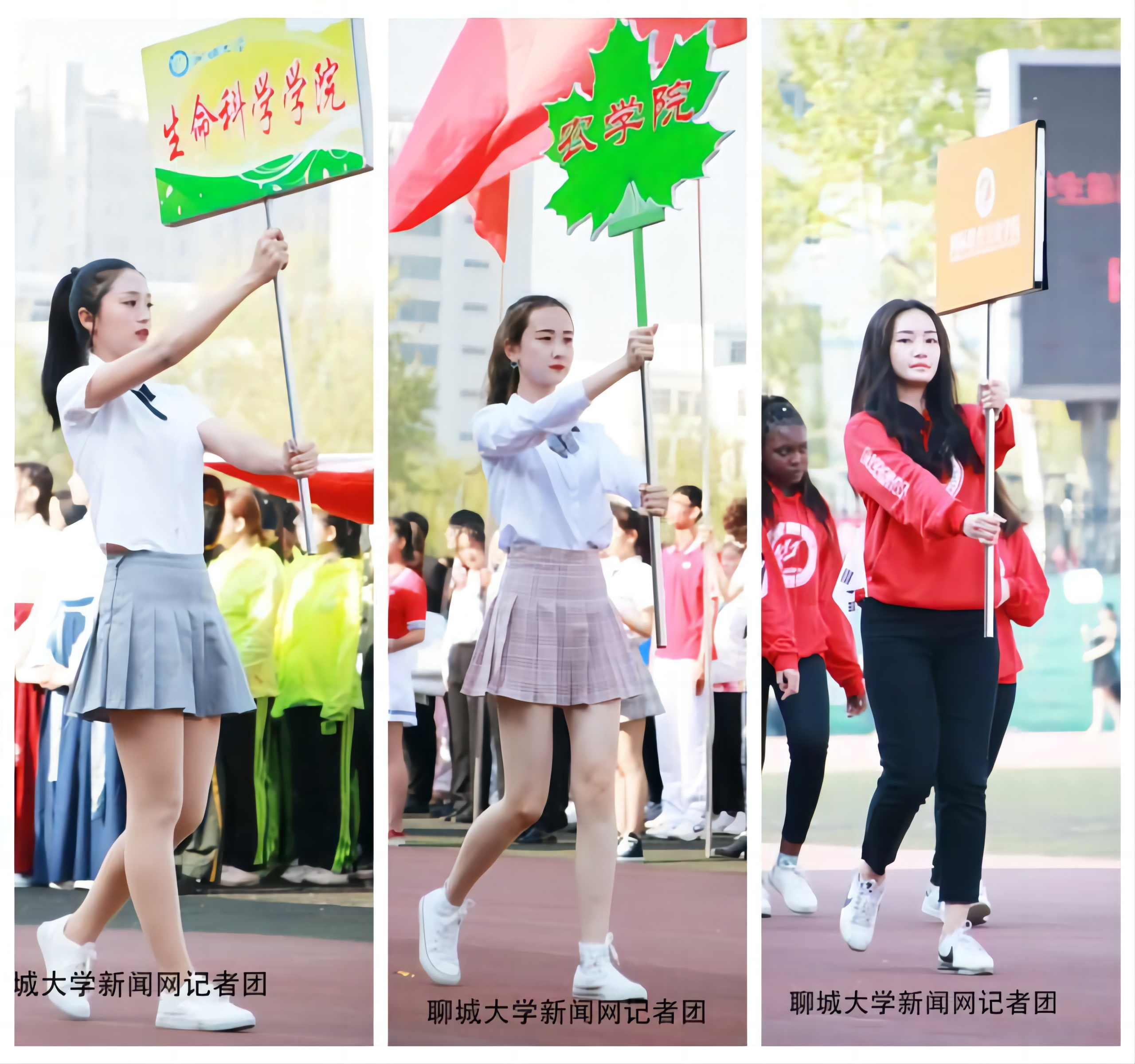 4月18日,春风悄悄拂过丰润的青草,聊城大学学生第四十届、教工第二十九届田径运动会拉开了帷幕。各方队的的引导员迎着轻风,沐浴着朝阳,展现出自信的风姿。你们迈着坚定的步伐,精神抖擞,步履从容。