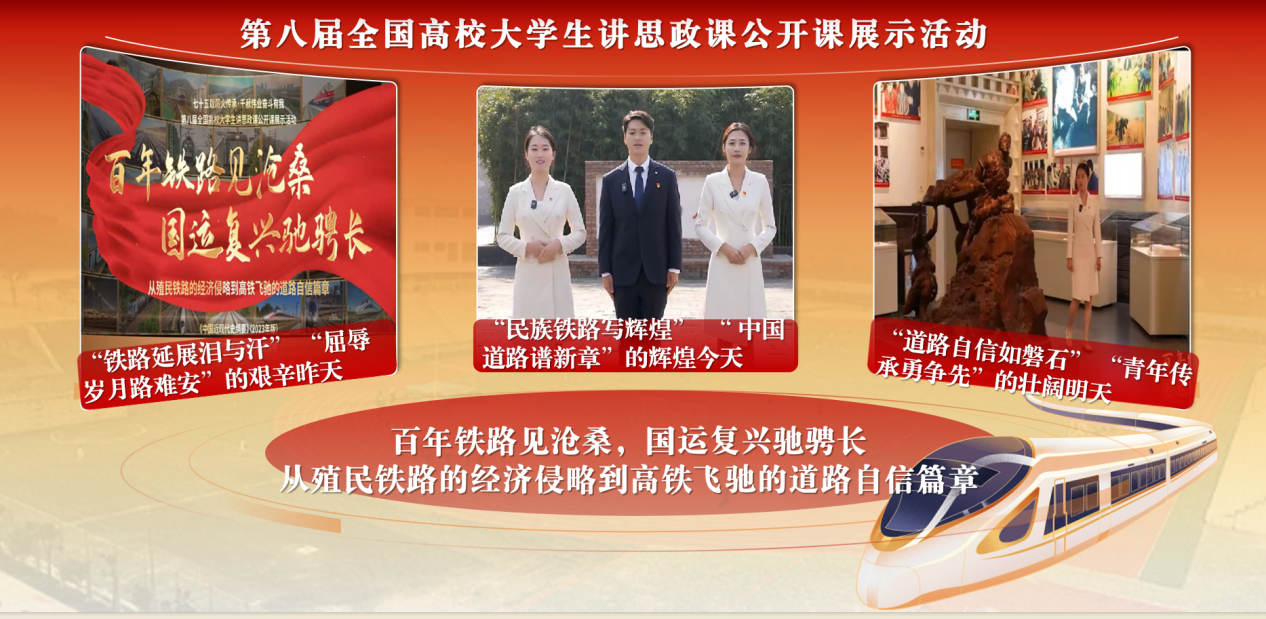 参赛作品以《中国近现代史纲要》(2023年版)为理论支撑,深刻回顾了西方列强在华强筑铁路、进行经济掠夺的屈辱历史,通过聊城火车站和聊城高铁站的发展变化,展现了中国铁路的华丽蜕变,凸显了中国特色社会主义道路的伟大成就。作品聚焦“未来如何继续走好中国特色社会主义道路”的时代命题,呼吁青年坚定道路自信,奋力书写为中国式现代化挺膺担当的青春篇章,成功将思政教育的“小课堂”延伸至中国特色社会主义道路的“大舞台”,实现了理论与实践、知识传授与价值引领的有机结合。