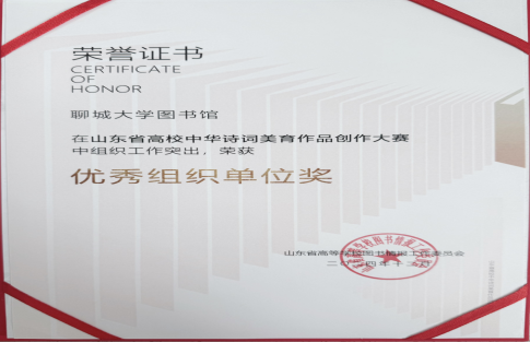 近日,“山东省高校中华诗词美育作品创作大赛”圆满落幕,其中,我校巫骏昂、安辛谨、孔诗洁、朱宏振、秦治洲、王双然6名师生荣获三等奖,刘瑞雪、李晓倩、陈晨等16名师生获优秀奖。此外,孙忠月、戴乾、金亚倩3位教师获评“优秀指导教师”,陈立风、隋林晶荣获“优秀组织个人奖”。我校图书馆被授予“优秀组织单位”荣誉称号。