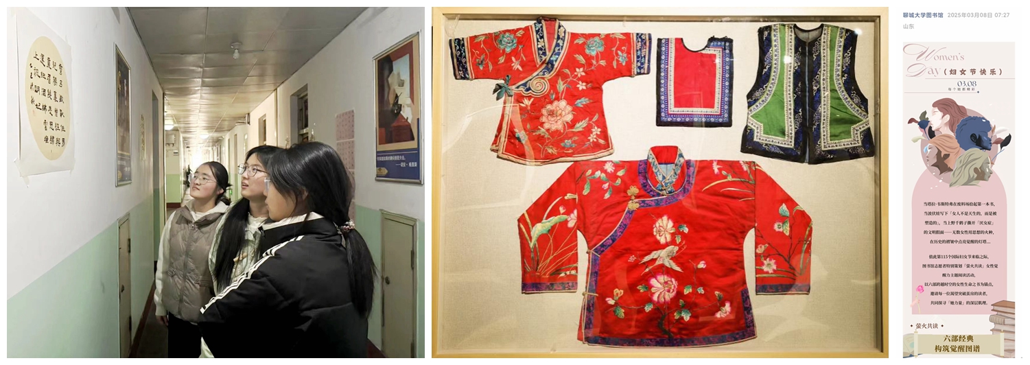 激发“她智慧”。校工会(妇委会)和各二级工会通过开展征文、家书、书画阅读、摄影阅读、表演阅读等内容丰富、形式多样的线上线下读书活动,使广大女教职工在阅读中增长知识、启迪智慧,在工作中读以致用、提升素质,在生活中丰富人生、体验幸福,同时择优推荐优秀作品参加全国“书香三八”全省“玫瑰书香”女职工阅读优秀作品评选活动。美术与设计学院举办了“大河衣裳:黄河下游民众服饰展”和“雅韵长廊 书画芳华”妇女节主题书画展,并承办了“她”视界主题绘画艺术活动。书画展和“她”视界以书画的形式展示了女性力量与才能,为女性艺术创作者搭建交流平台。农业与生物学院组织了教工观影《哪吒2》活动,这不仅是一场光影盛宴,更是一次精神的洗礼——哪吒“我命由我不由天”的精神激励着每一位教工在各自的生活和工作中勇敢追梦、不懈奋斗。图书馆工会策划了“萤火共读”女性觉醒力主题阅读活动,以《第二性》《你当像鸟飞往你的山》等六部跨越时空的女性生命之书为锚点,邀请读者共同探寻“她力量”的深层机理。